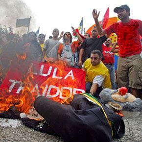 Em Aracaju, primeira parada de uma incursão pelo nordeste, Lula voltou à lenga-lenga da "infância pobre". Não faltaram vaias por lá também. Os gorilas da presidência reprimiram a manifestação. Vem para o sul, Lula, vem...