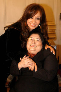 Deu nisso: a "revolucionária" tucumana agora canta no palácio do casal Kirchner, por quem fez campanha. (Na foto, com Cristina, a atual presidenta).
